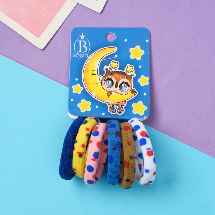 Резинки для волос «Бантик», набор 6 шт., горошек