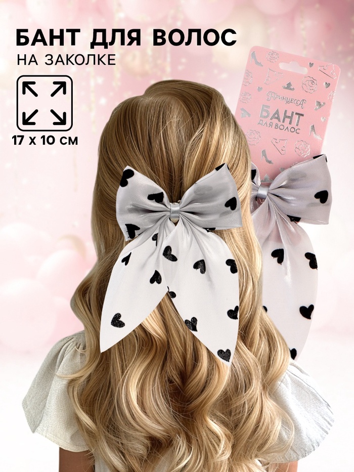 Бант для волос на заколке с лентами «Сердечки», белый, Принцессы Дисней