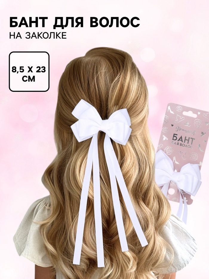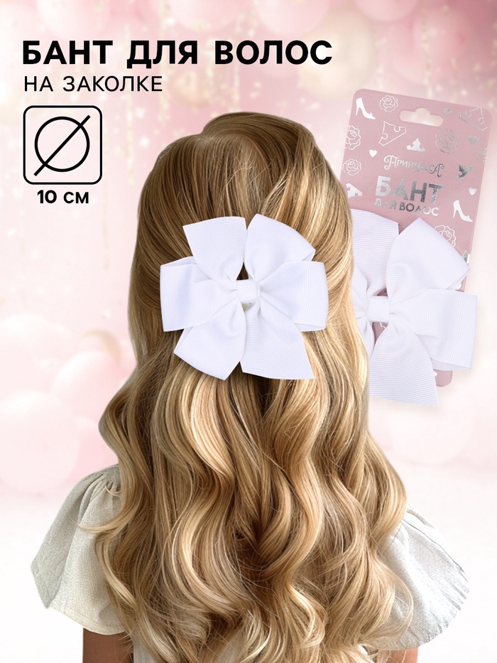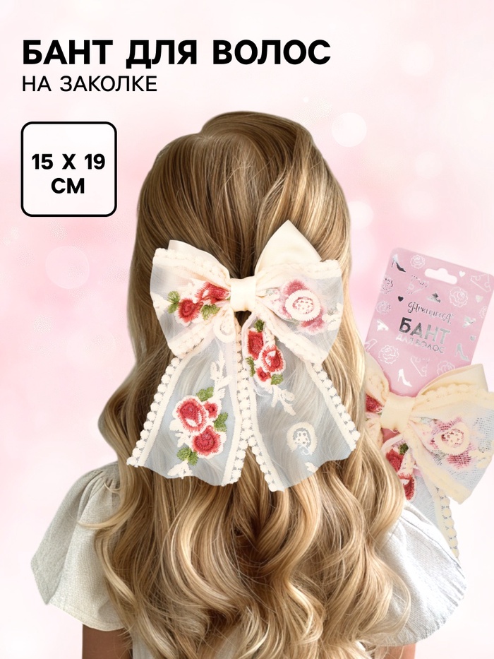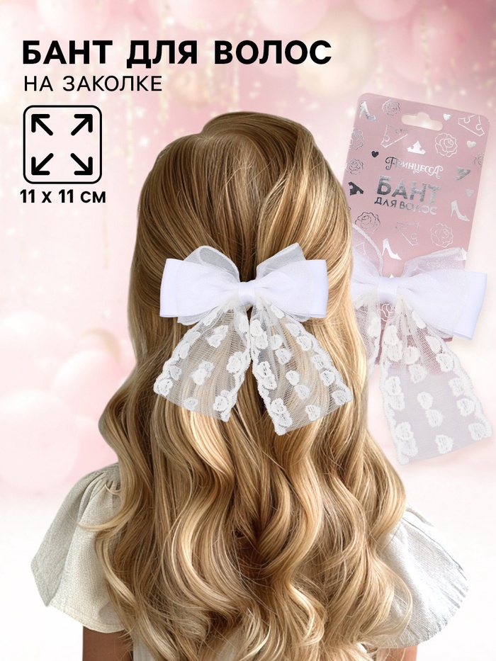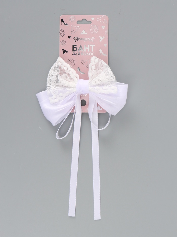 Бант для волос на заколке с лентами «Цветы», белый, Принцессы