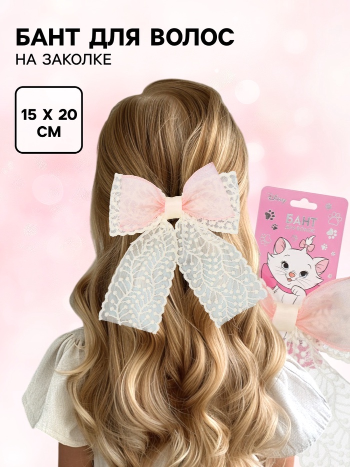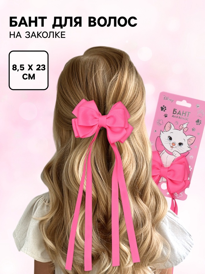 Бант для волос на заколке с лентами, розовый, Коты аристократы