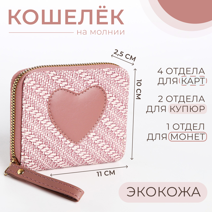 Кошелёк детский на молнии, цвет розовый