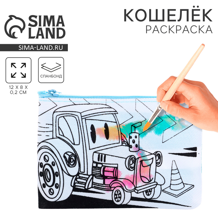 Кошелёк прямоугольный текстильный «Трактор», 12×8 см