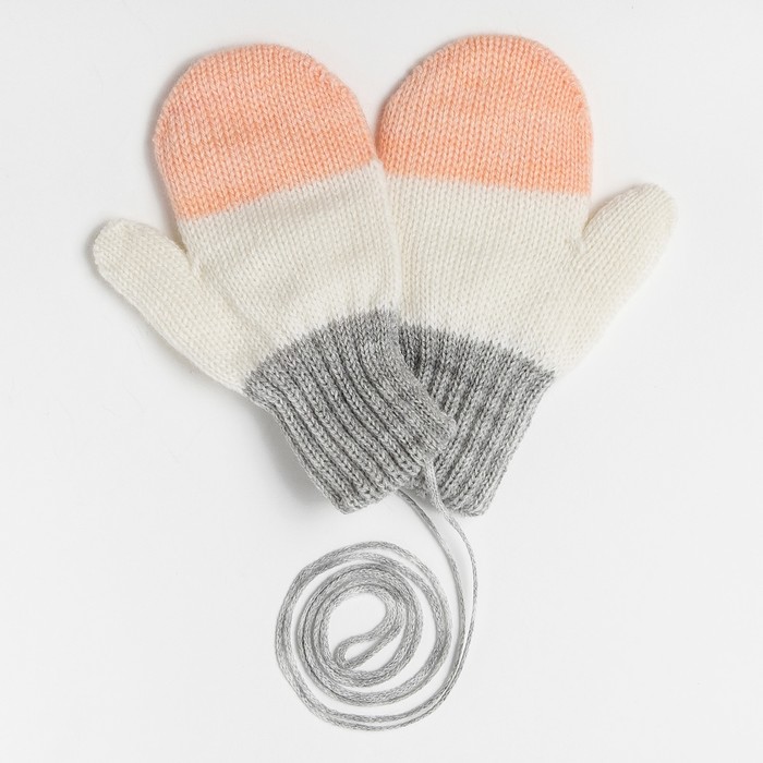 Варежки для девочки двойные, цвет серый/белый/персик, размер 12