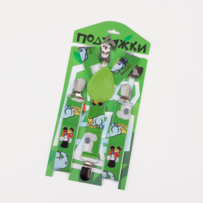 Подтяжки детские, ширина 2.5 см, цвет зелёный