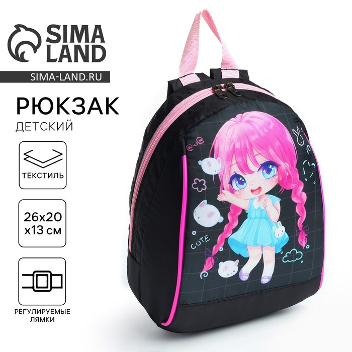 Рюкзак школьный детский для девочки «Аниме», 20×13×26, на молнии, чёрный