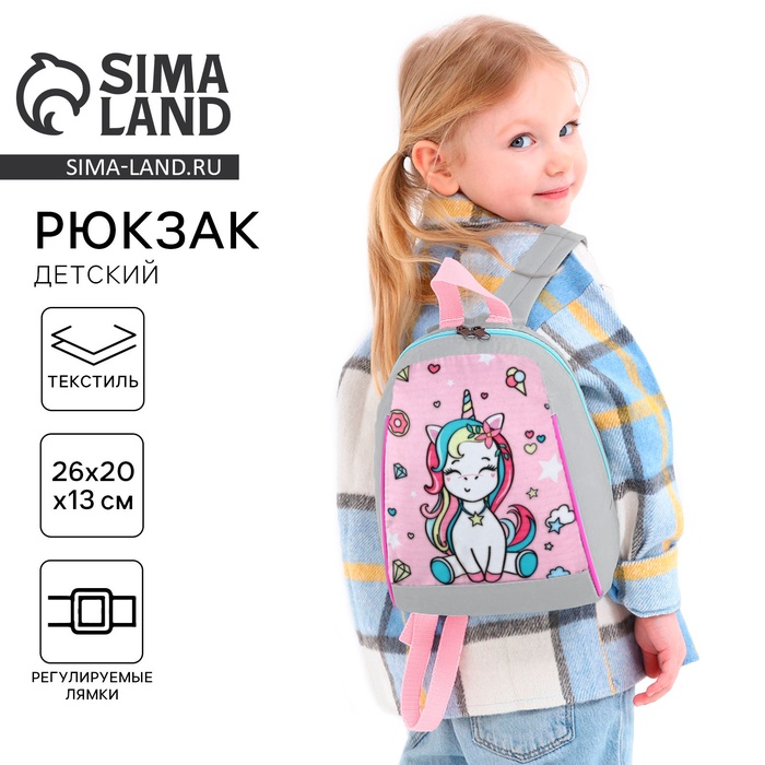 Рюкзак школьный детский для девочки «Единорожка», 20×13×26, отдел на молнии, сиреневый