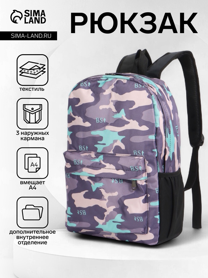Рюкзак школьный на молнии, с карманами, с принтом, размер 30×13×42 см, сиреневый