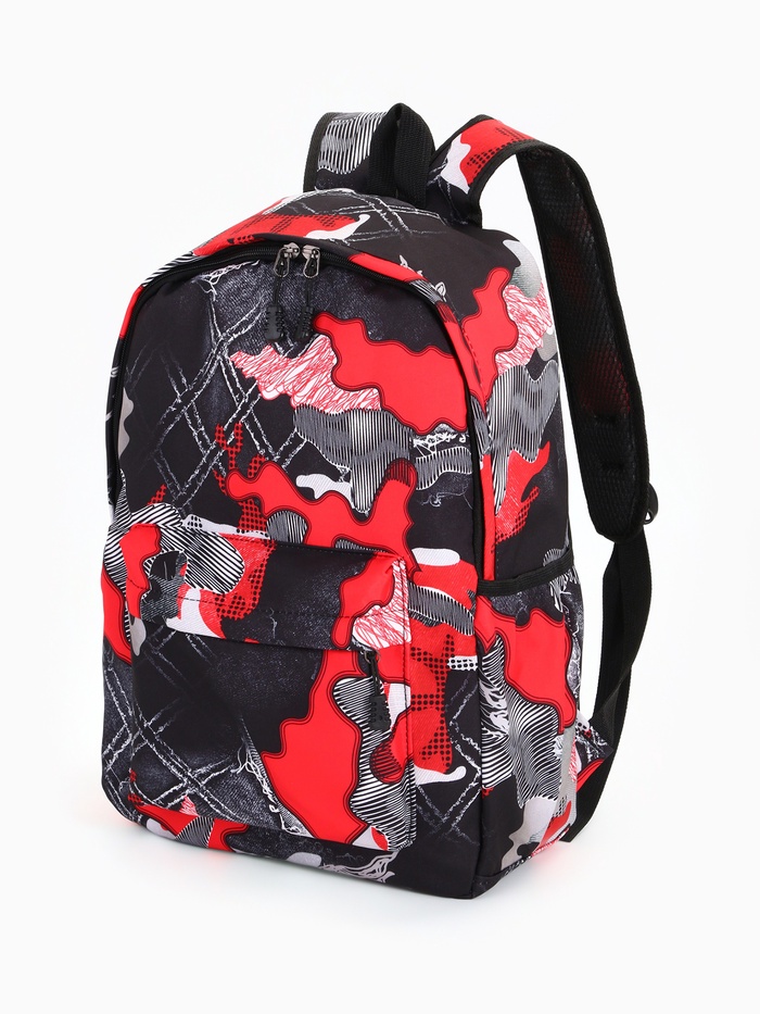 Рюкзак школьный на молнии, с карманами, с принтом, размер 30×13×42 см, красный/чёрный
