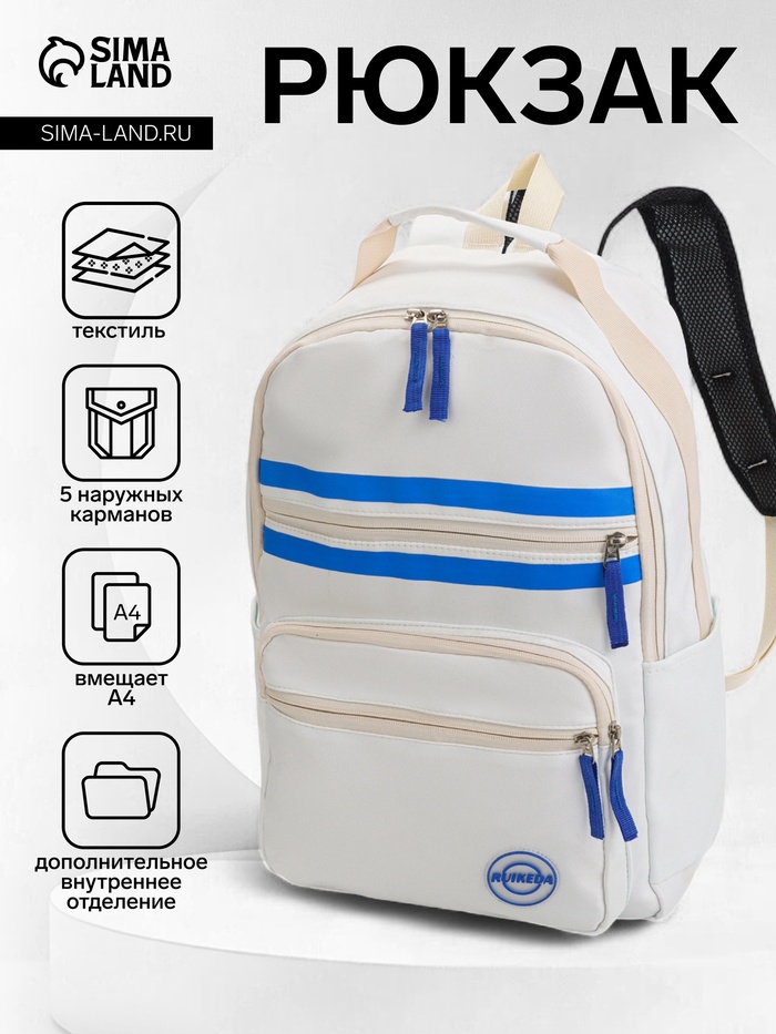 Рюкзак школьный на молнии, с карманами, с полосками, размер 29×13.5×42 см, белый