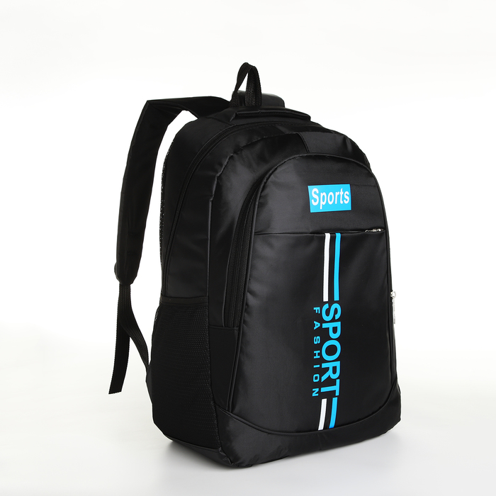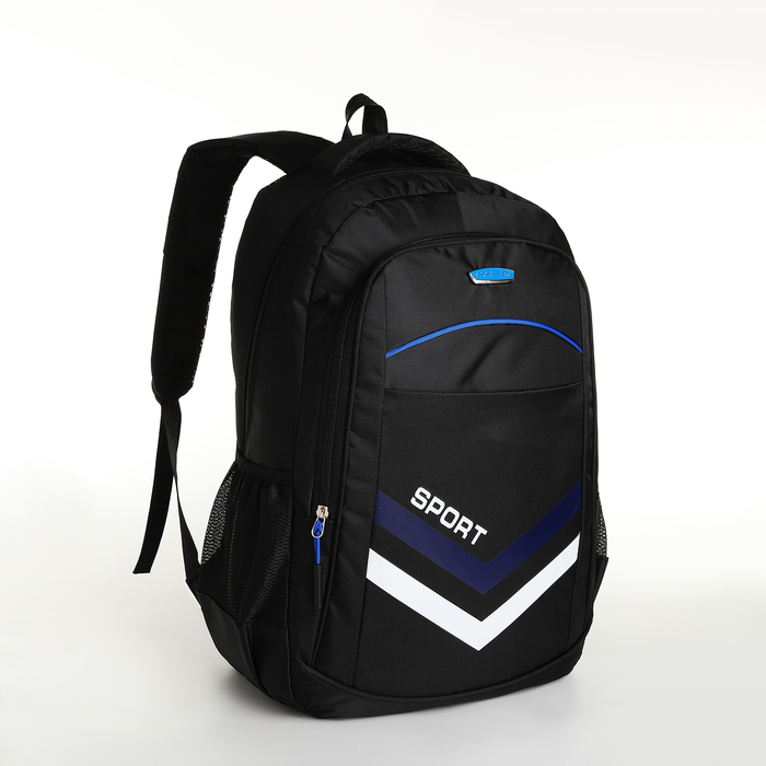 Рюкзак школьный на молнии, с карманами, с полосками, однотонный, размер 31×14×47 см, чёрный/синий