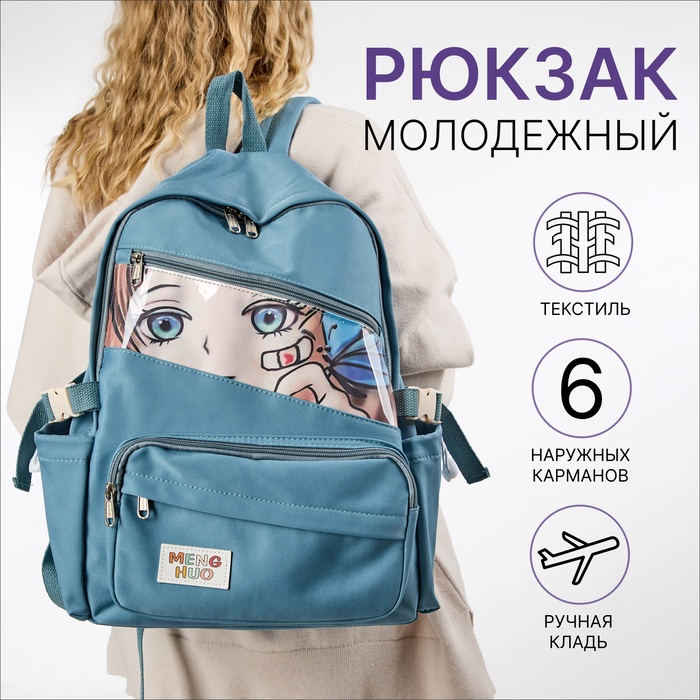 Рюкзак школьный на молнии, с принтом, размер 30×13×42 см, синий