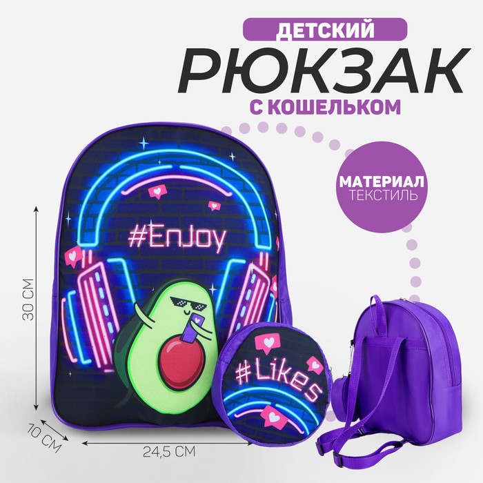 Рюкзак школьный детский для мальчика «Авокадо», 24,5х10х30 , отд на молнии, фиолетовый, с кошельком