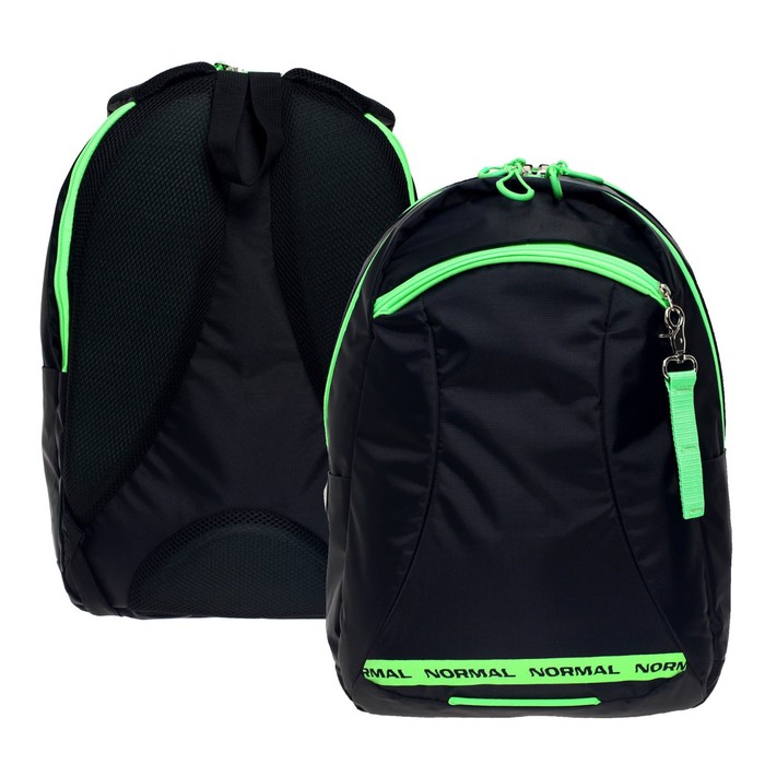 Рюкзак молодёжный, 44×30×17 см, эргономичная спинка, Calligrata К «Нормал», чёрный/зеленый
