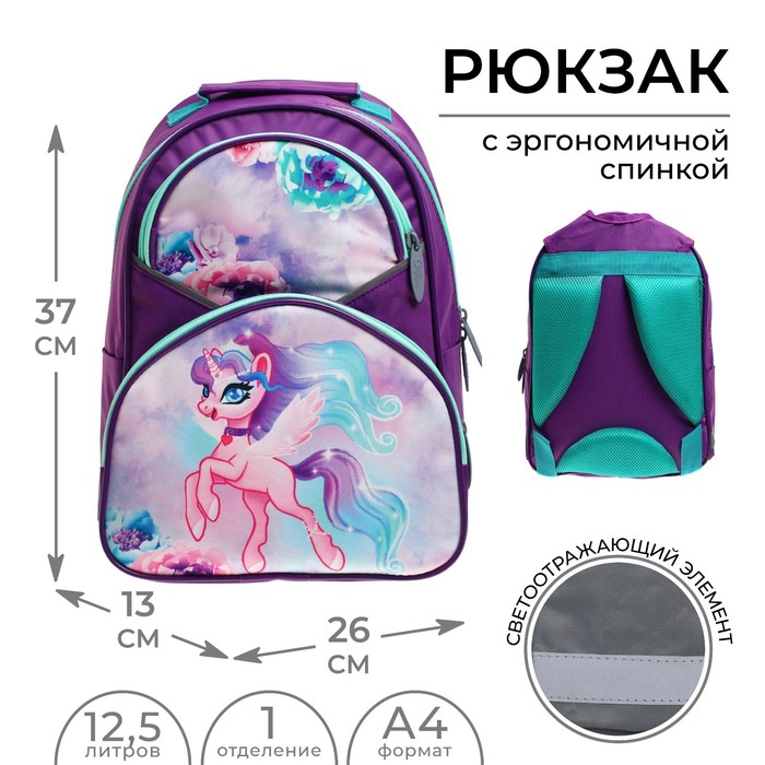 Рюкзак школьный, 37×26×13 см, эргономичная спинка, Calligrata АН «Единорог»