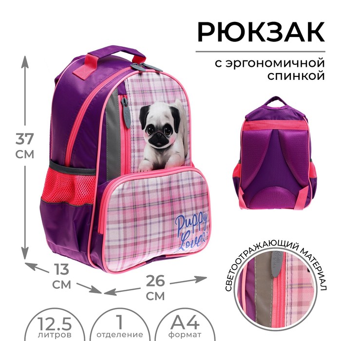 Рюкзак школьный, 37×26×13 см, эргономичная спинка, Calligrata ОРТ «Мопсик»
