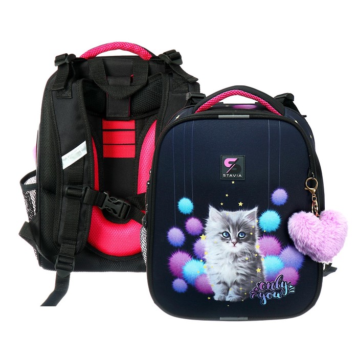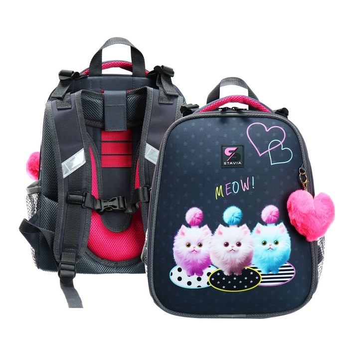 Рюкзак каркасный школьный 38×30×16 см, эргономичная спинка, Stavia «Котик»