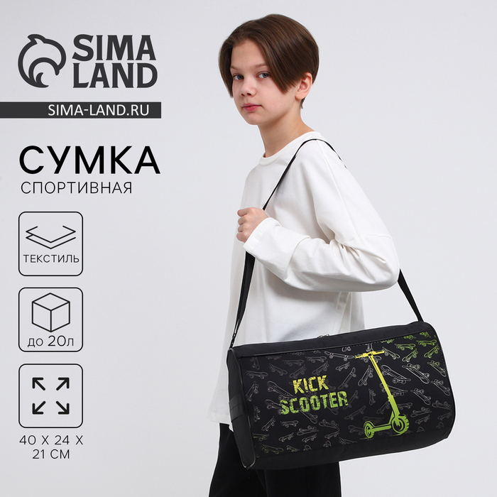 Сумка детская спортивная для мальчика «Самокат», 40×21×24 см, чёрная