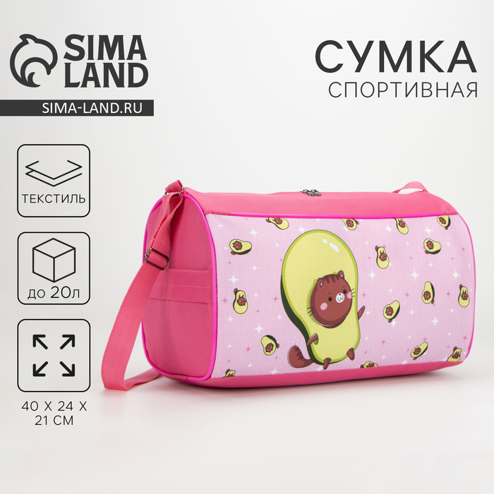 Сумка спортивная Авокадо на молнии, наружный карман, розовая