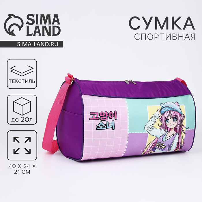 Сумка детская спортивная для девочки «Аниме», 40×21×24 см, сиреневая