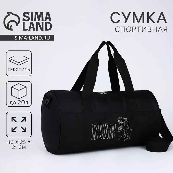 Сумка спортивная ROAR, 40×24×21, на молнии, длинный ремень, черная