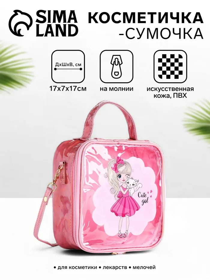 Сумка-косметичка для девочки на молнии, цвет розовый