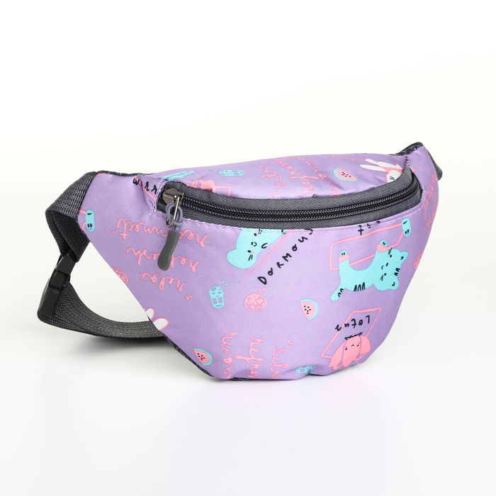 Сумка поясная детская для девочки на молнии, сиреневая