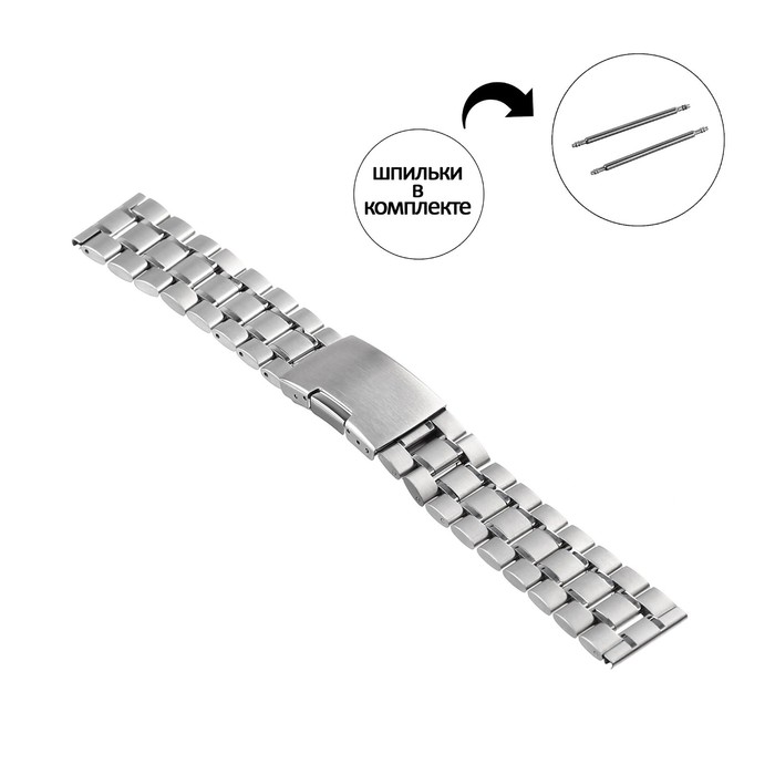 Ремешок для часов, 22 мм, l-17.4 см, шпиньки в комплекте, серебро