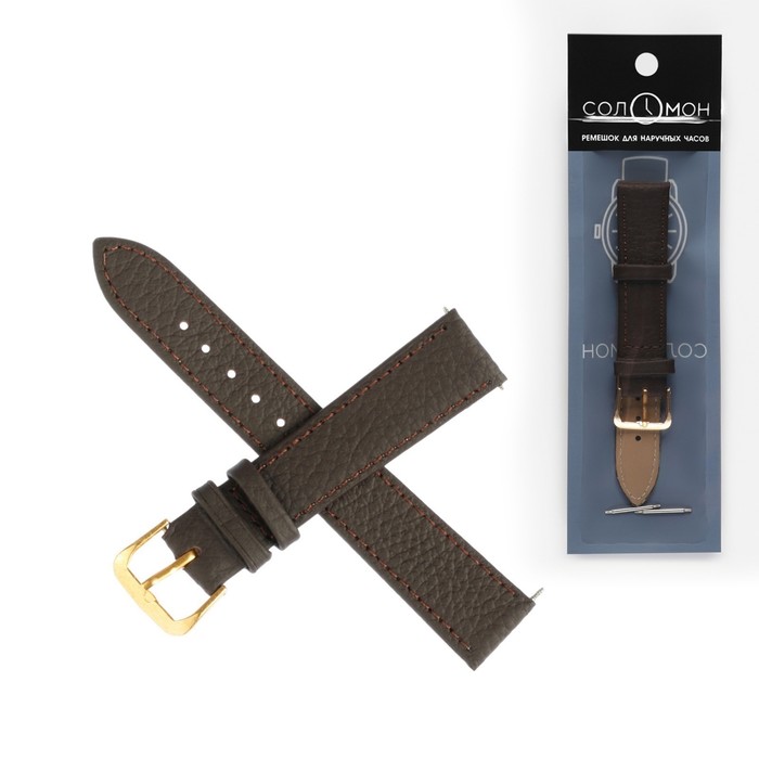 Ремешок для часов "Соломон", 18 мм, натуральная кожа, l-20 см, коричневый с тиснением