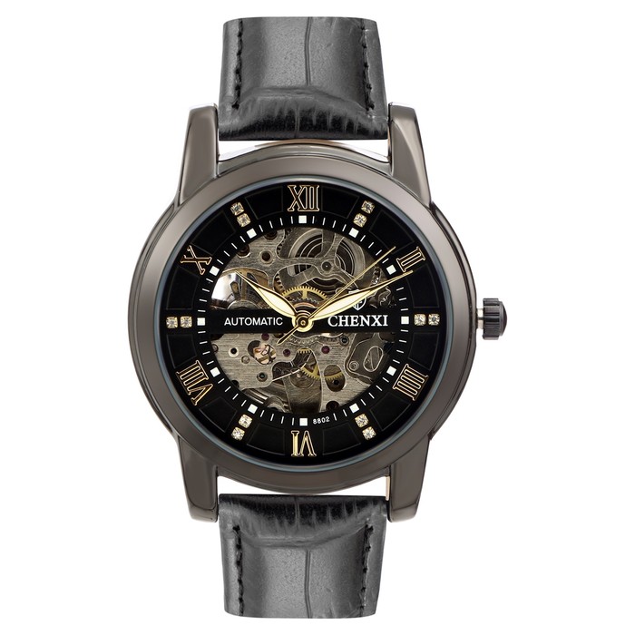 Часы наручные механические, мужские, d-4.2 см, длина ремешка l=23 см, водонепроницаемые, светящиеся