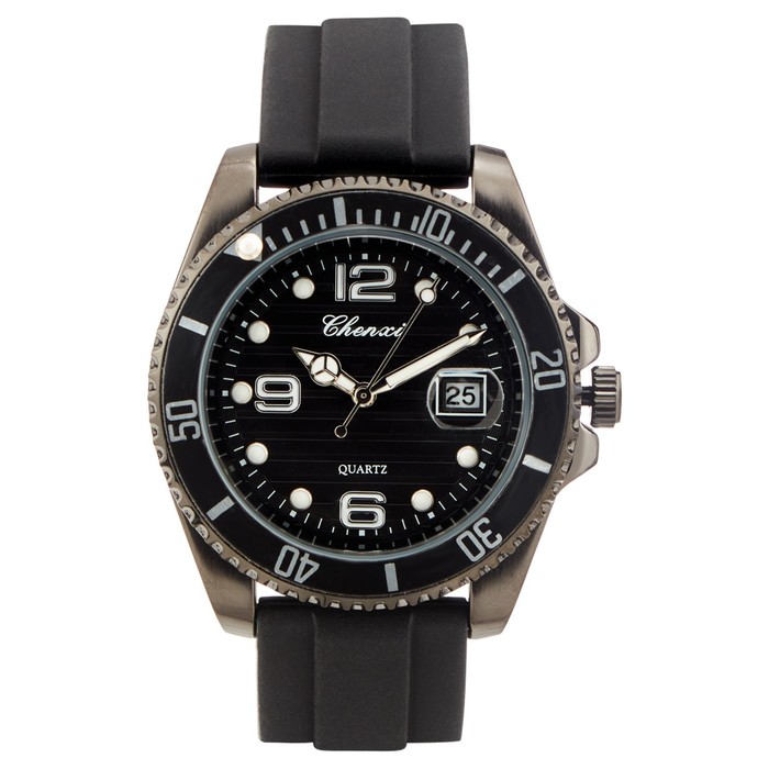 Часы наручные кварцевые мужские, с календарем, d-4.4 см, ремешок l-24 см, светящиеся, 3 ATM 973000
