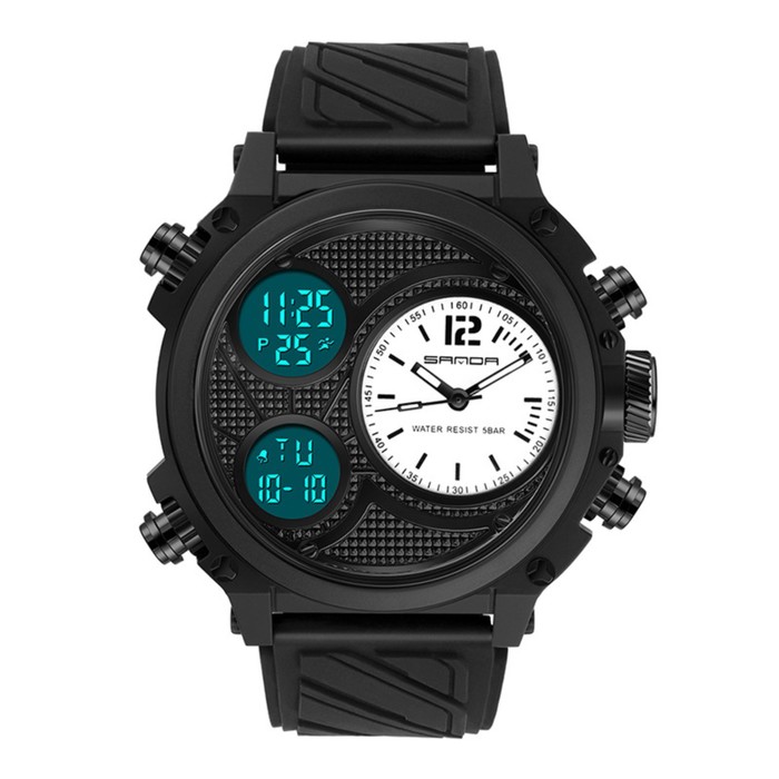 Часы наручные электронные, с будильником, d-5.3 см, ремешок l-27 см, 5 ATM, светящиеся