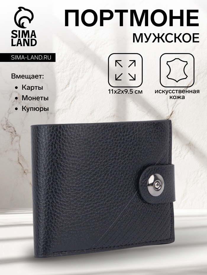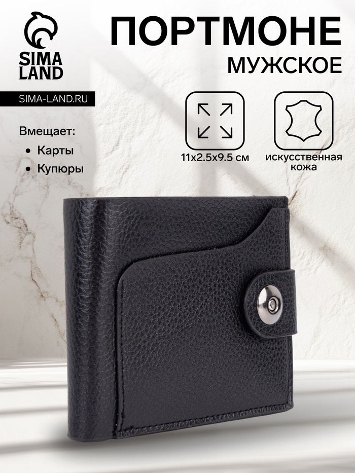 Портмоне мужское на магните, отдел для купюр, для монет, для карт, цвет чёрный