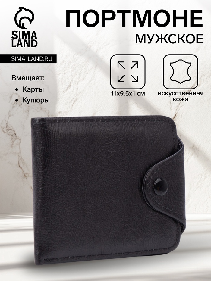 Портмоне мужское на кнопке, цвет чёрный