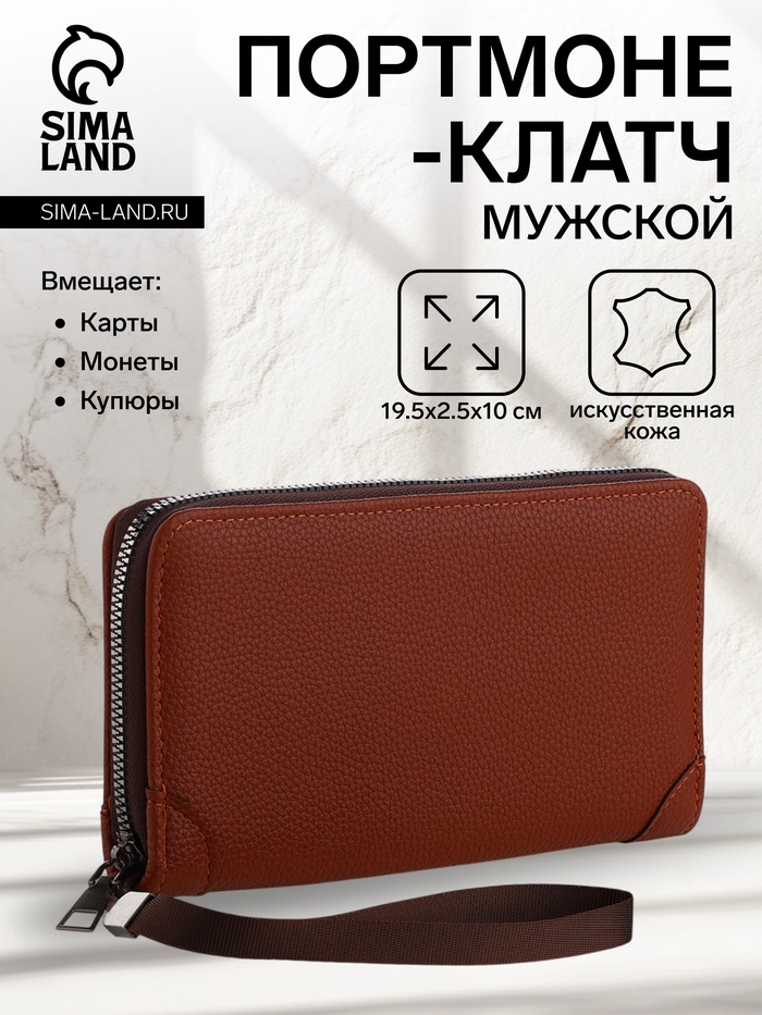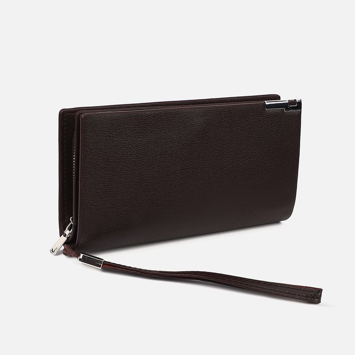 Портмоне-клатч мужской на молнии, отдел для купюр, карт, монет, цвет коричневый