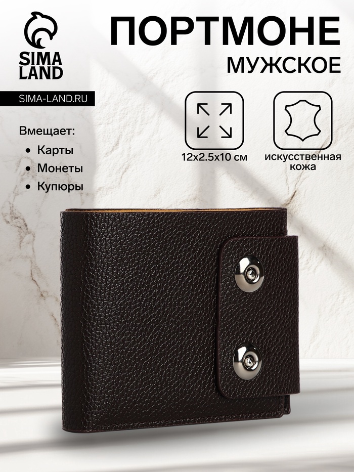 Портмоне мужское на магнитах, отдел для купюр, для карт, для монет, цвет коричневый
