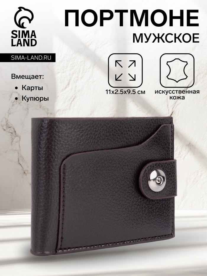 Портмоне мужское «Заки», на магните, отдел для купюр, для карт, для монет, коричневое