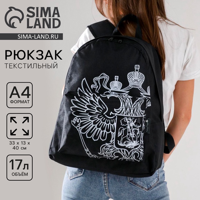 Рюкзак школьный «Герб», 33×13×40, на молнии, карман, черный