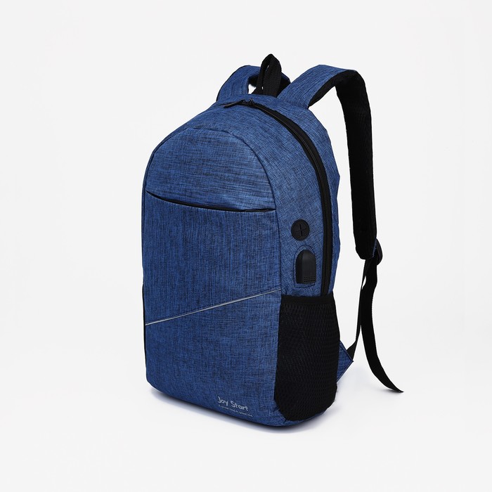 Рюкзак мужской на молнии, 2 наружных кармана, с USB, цвет синий