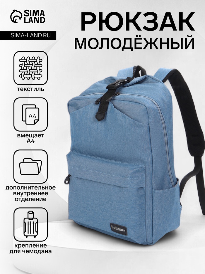 Рюкзак школьный из текстиля на молнии, FULLDORN, наружный карман, цвет голубой