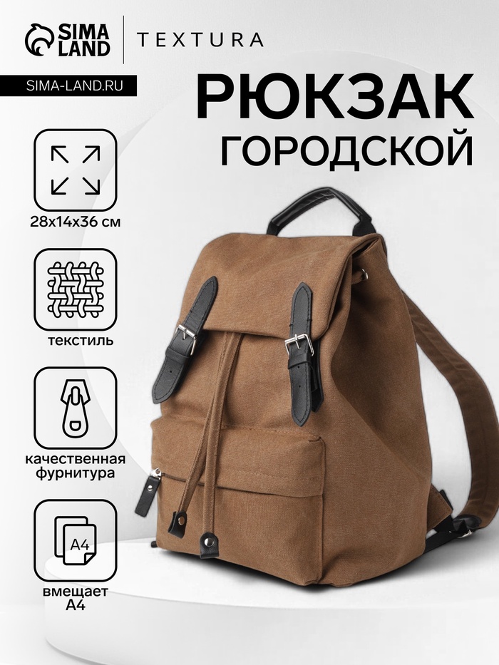 Рюкзак мужской на клапане TEXTURA, цвет коричневый