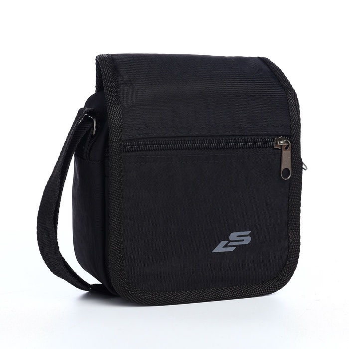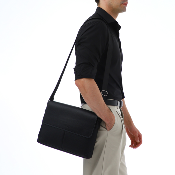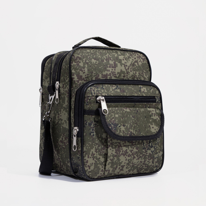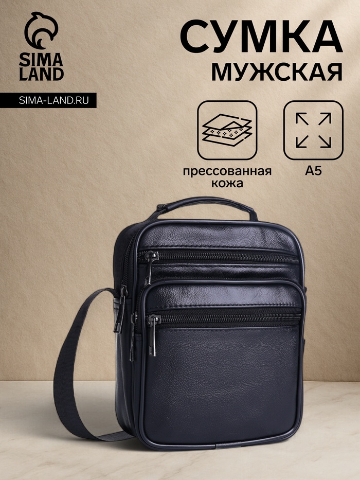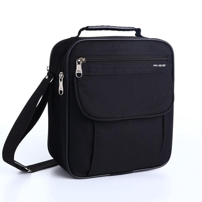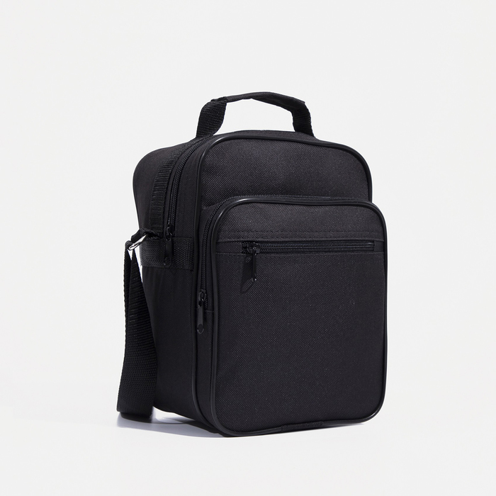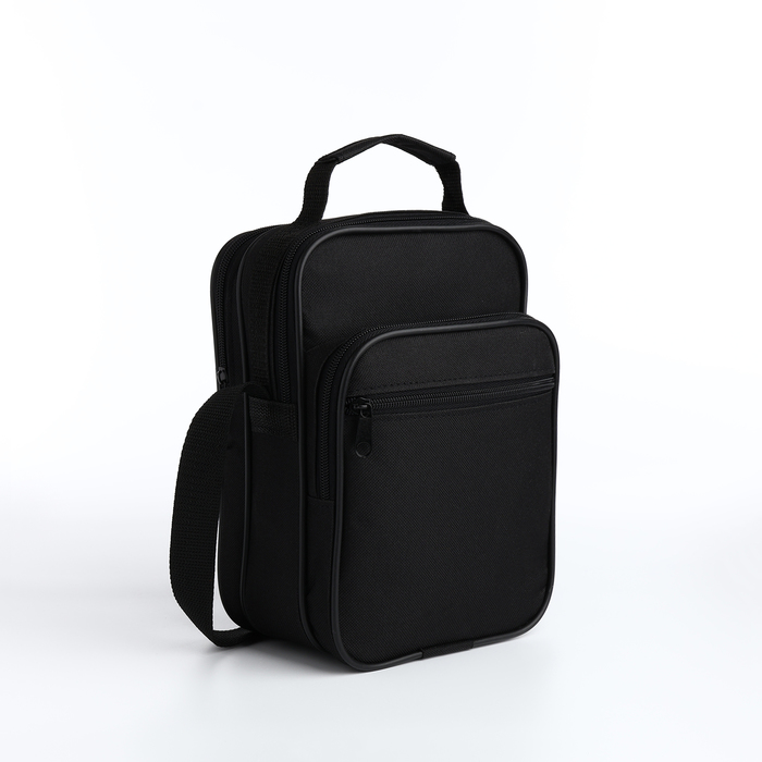 Сумка мужская на молнии, 4 наружных кармана, с ручкой длинный ремень, чёрная