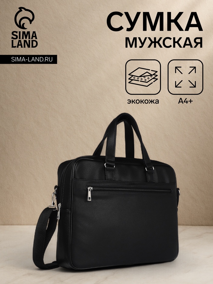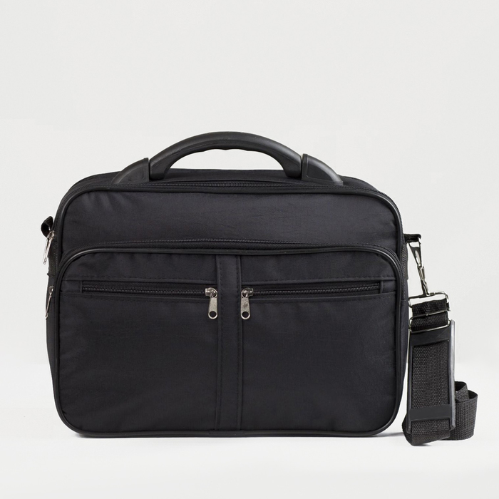 Сумка деловая мужская на молнии TEXTURA, 2 наружных кармана, чёрная
