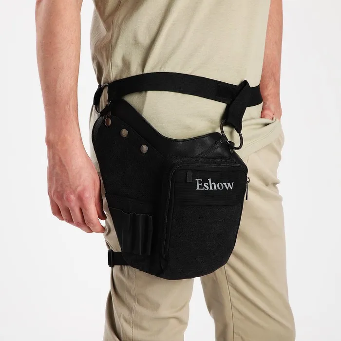Поясная сумка на молнии, 3 наружных кармана, зацеп на бедро, цвет чёрный