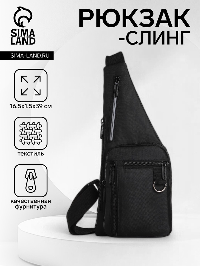 Сумка-слинг мужская на молнии, 4 наружных кармана, чёрная