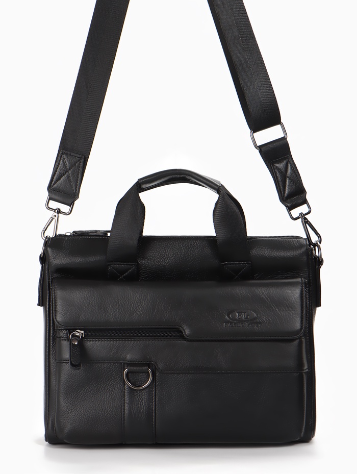 Сумка мужская, натуральная кожа, на длинном ремне, Fidelio Largo, чёрная