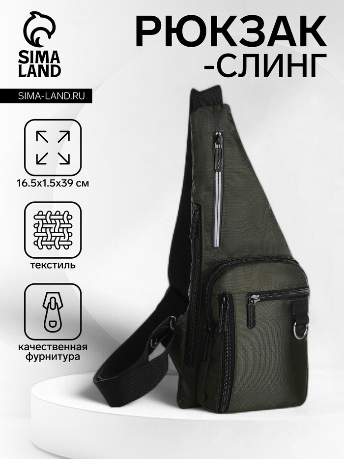 Сумка-слинг мужская на молнии, 4 наружных кармана, хаки