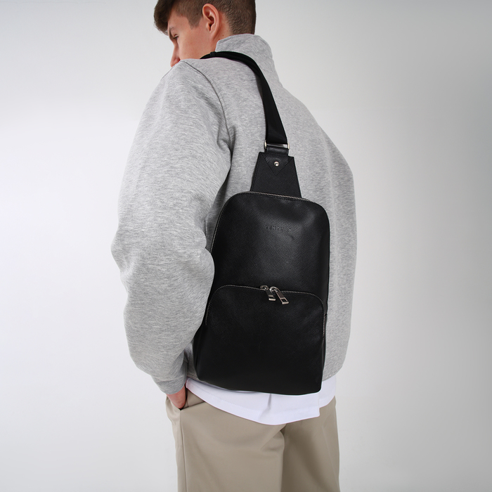 Сумка-слинг на молнии TEXTURA, наружный карман, цвет чёрный