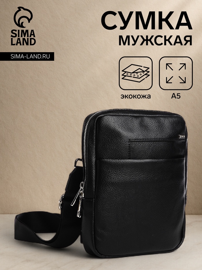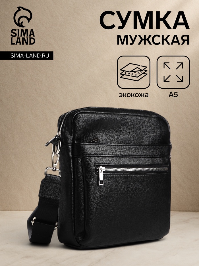 Сумка кросс-боди мужская Bagsland на молнии, 2 наружных кармана, с ручкой, длинный ремень, 19×5×27 см, чёрная