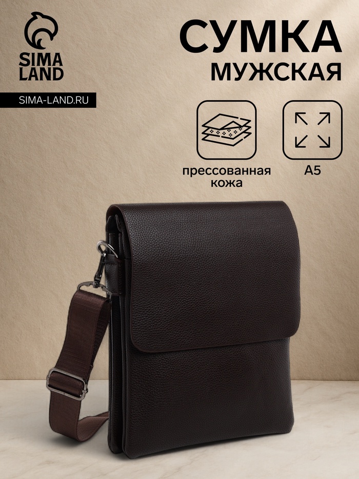 Сумка планшет мужская TEXTURA, 2 отдела на молнии, наружный карман, 23×4×26 см, коричневая