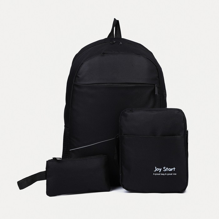 Набор рюкзак школьный на молнии из текстиля с USB, сумка, косметичка, чёрный